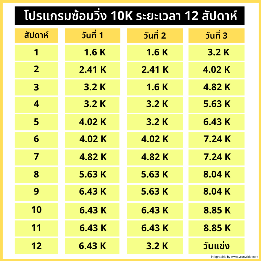 โปรแกรมการซ้อมวิ่ง 10k เป็นระยะเวลา 12 สัปดาห์