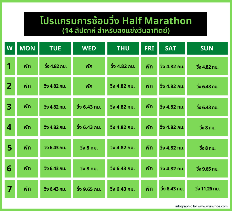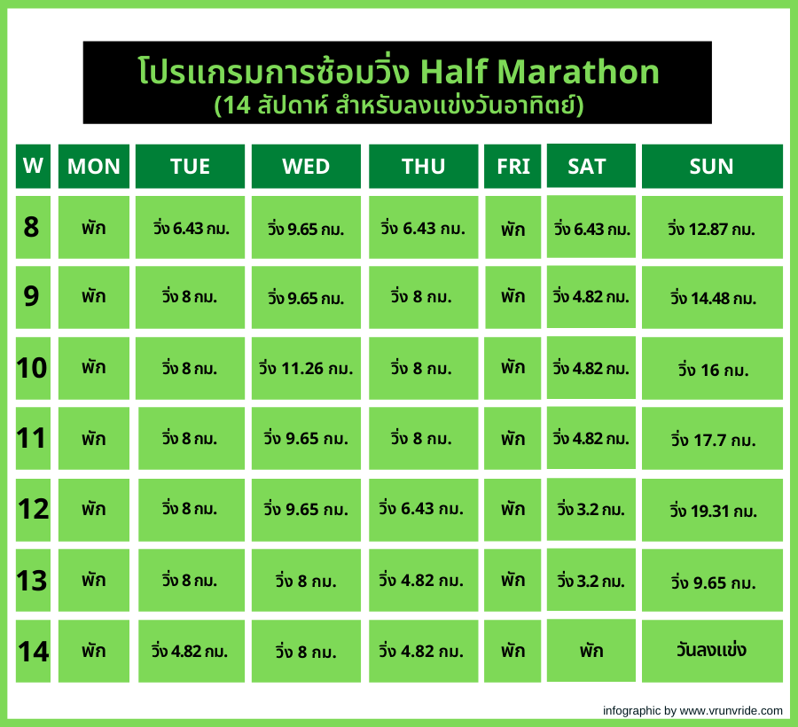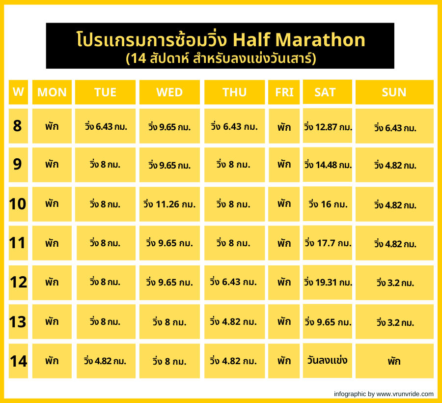 โปรแกรมการซ้อมวิ่งฮาล์ฟมาราธอน 14 สัปดาห์ (Half Marathon 14 Weeks)