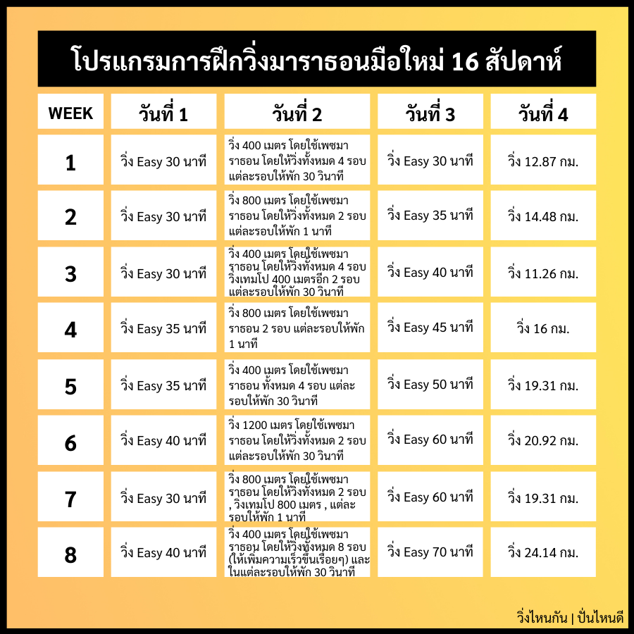 โปรแกรมการฝึกวิ่งมาราธอน (สัปดาห์ที่ 1-8)