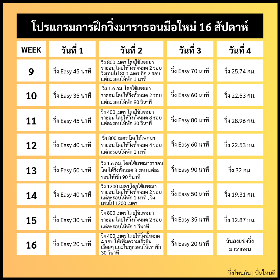 โปรแกรมการฝึกวิ่งมาราธอน (สัปดาห์ที่ 9-16)