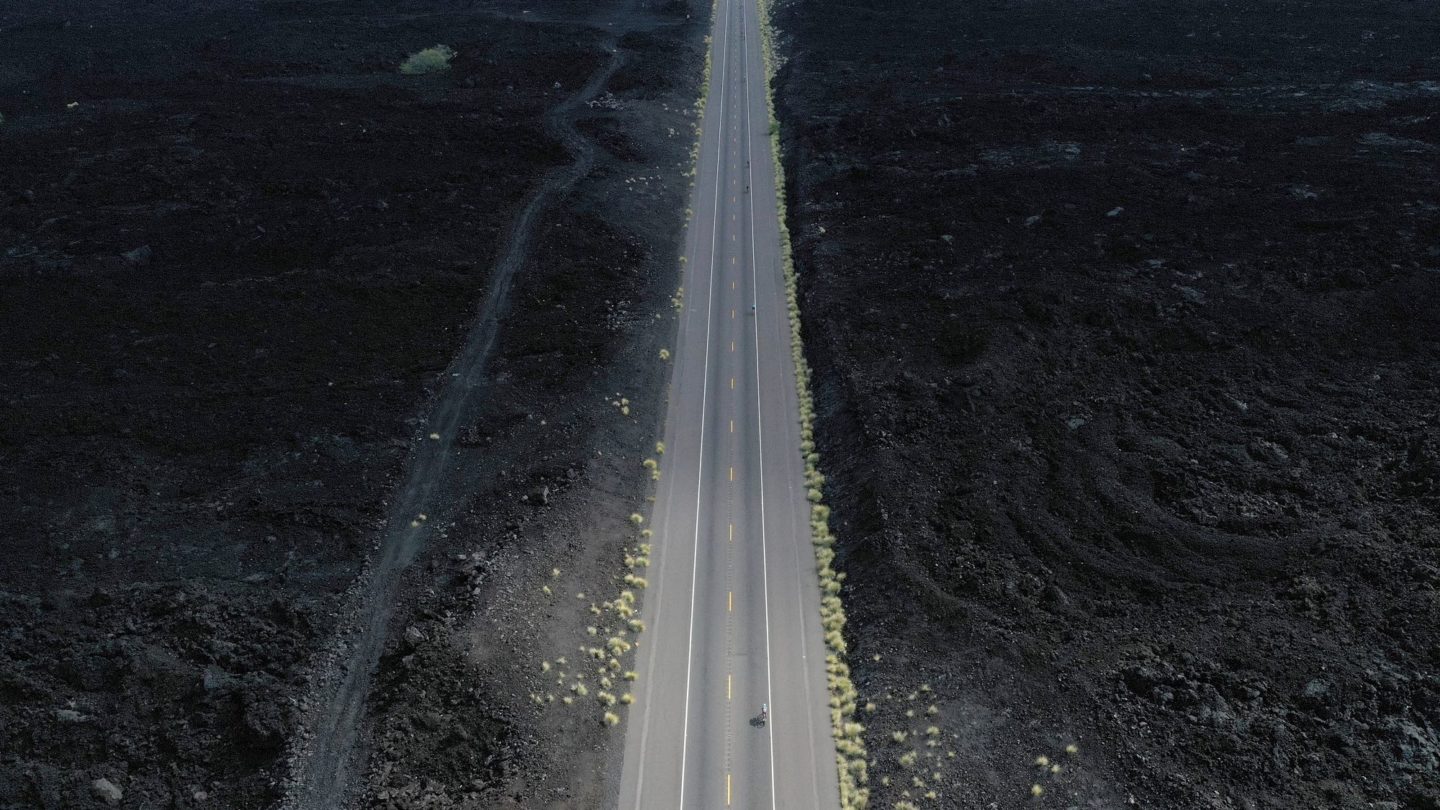 14 – Roy Lagerburg จากเนเธอร์แลนด์ กำลังผ่านทุ่งหญ้าและไหล่เขาหินบะซอลต์ตามทางหลวง Queen Ka’ahumanu