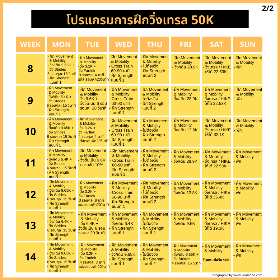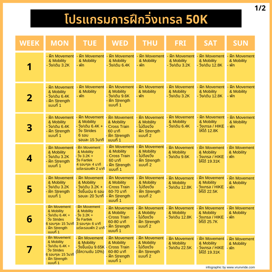 ** โปรแกรมการฝึกวิ่งเทรล 50 k **