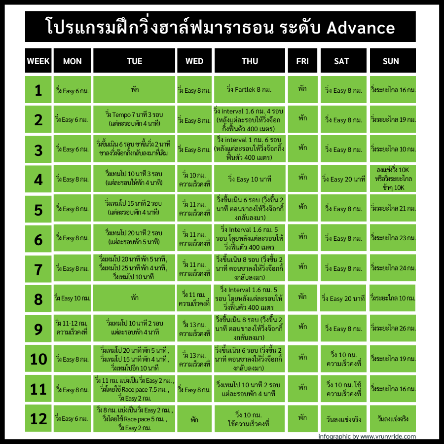 โปรแกรมการฝึกวิ่งฮาล์ฟมาราธอนระดับ Advance