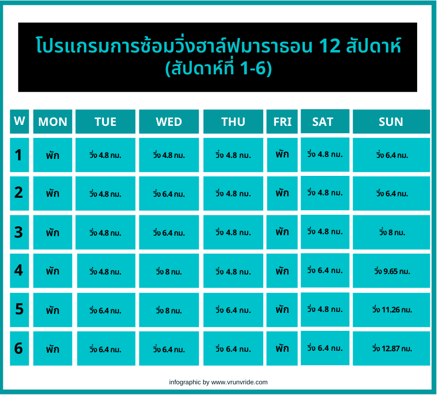 โปรแกรมการซ้อมวิ่งฮาล์ฟมาราธอน 12 สัปดาห์