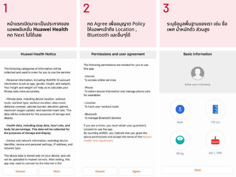 จากนั้นทำตามขั้นตอนด้านล่างนี้ได้เลย ขั้นตอนหลักๆจะมีแค่ 3 อย่าง คือ อนุญาต policy , เพิ่มอุปกรณ์ , ตอบรับจับคู่นาฬิกากับสมาร์ทโฟน และที่เพื่อนๆเห็นว่ามีหลายขั้นตอนเพราะเราทำให้ดูแบบละเอียดมาก แต่ตอนทำจริงๆ ใช้เวลาไม่เกิน 5 นาที ง่ายและสะดวกมากค่ะ