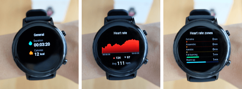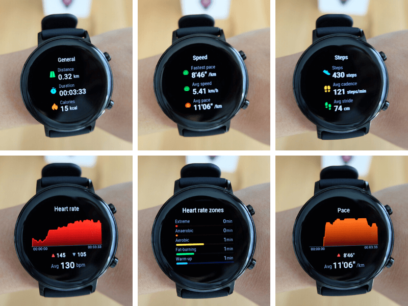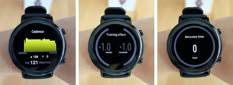 - วิ่ง : ระหว่างวิ่งหน้าปัดนาฬิกาจะบอกระดับความเข้มข้น / อัตราการเต้นหัวใจ / เพซ / ระยะทาง / เวลา