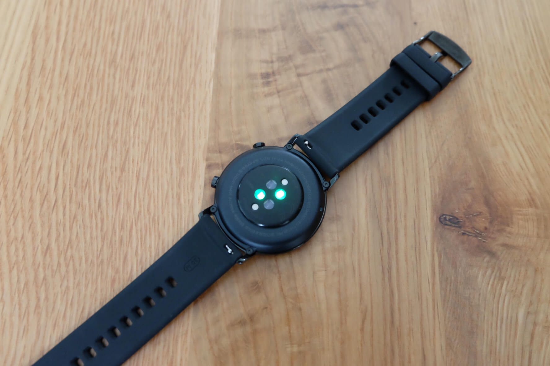 ส่วนด้านหลังตัวเรือนของ HUAWEI Watch GT 2 จะมีเซ็นเซอร์แสงสีเขียวสำหรับวัดอัตราการเต้นของหัวใจ รวมไปถึงวัดค่าอื่นๆอีกเพียบที่เรากำลังจะพาชมต่อไป รับรองว่าคุ้มค่าเกินราคาไปมากจริงๆ พร้อมแล้วก็เปิดเครื่องกันเลย!
