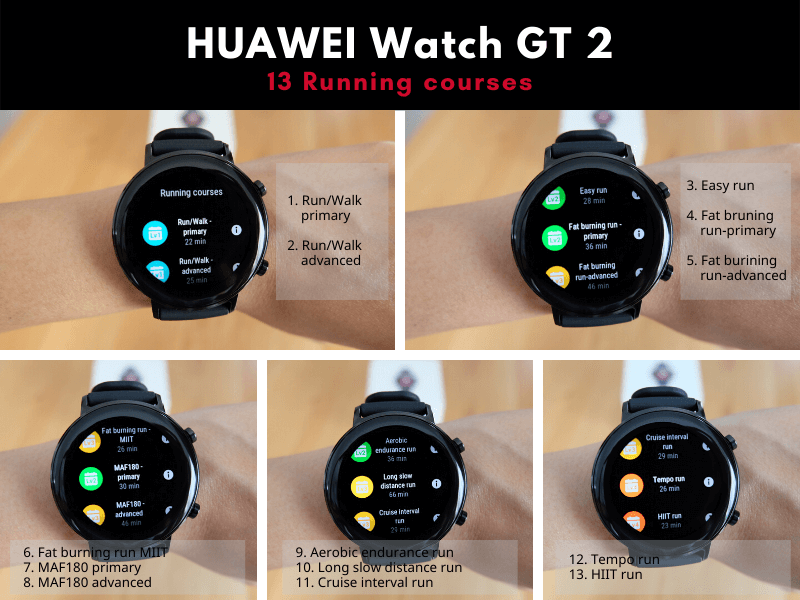 - ในส่วนการวิ่ง จะมี Running courses ทั้งหมด 13 รูปแบบ อยากซ้อมรูปแบบไหนมีทุกระดับ ตั้งแต่ Easy run ไปจนถึง HIIT run