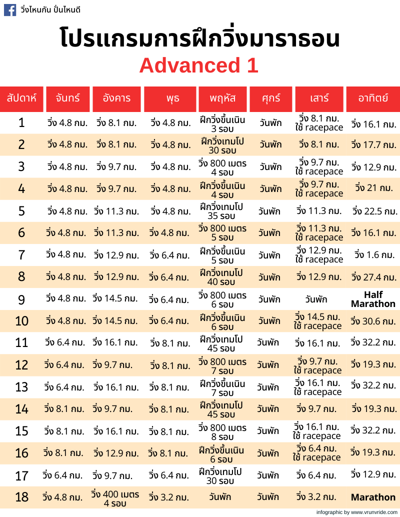 โปรแกรมการฝึกวิ่งมาราธอน Advanced 1