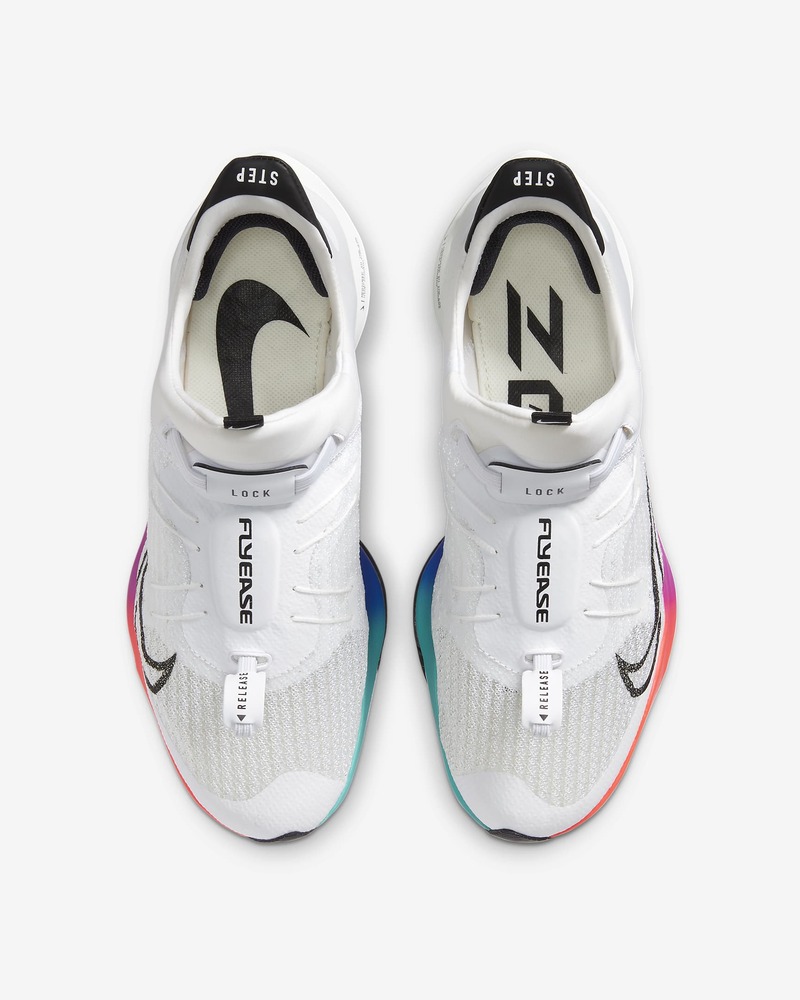 ถ้าใครติดตามรองเท้าวิ่งในซีรีส์นี้คงจำได้ว่า รองเท้าทุกรุ่นเปิดตัวด้วยโทนสีดำ-เขียว แต่ล่าสุด Nike Air Zoom รุ่น Tempo Next% FlyEase มาในโทนสีขาวล้วน ยิ่งช่วยเน้นให้รูปทรงของรองเท้าดูโดดเด่นสะดุดตาขึ้นไปอีก มองผ่านๆดูเหมือนจะธรรมดา แต่ก็แอบซ่อนความสดใสซาบซ่าด้วยลูกเล่นตรงด้านข้าง midsole