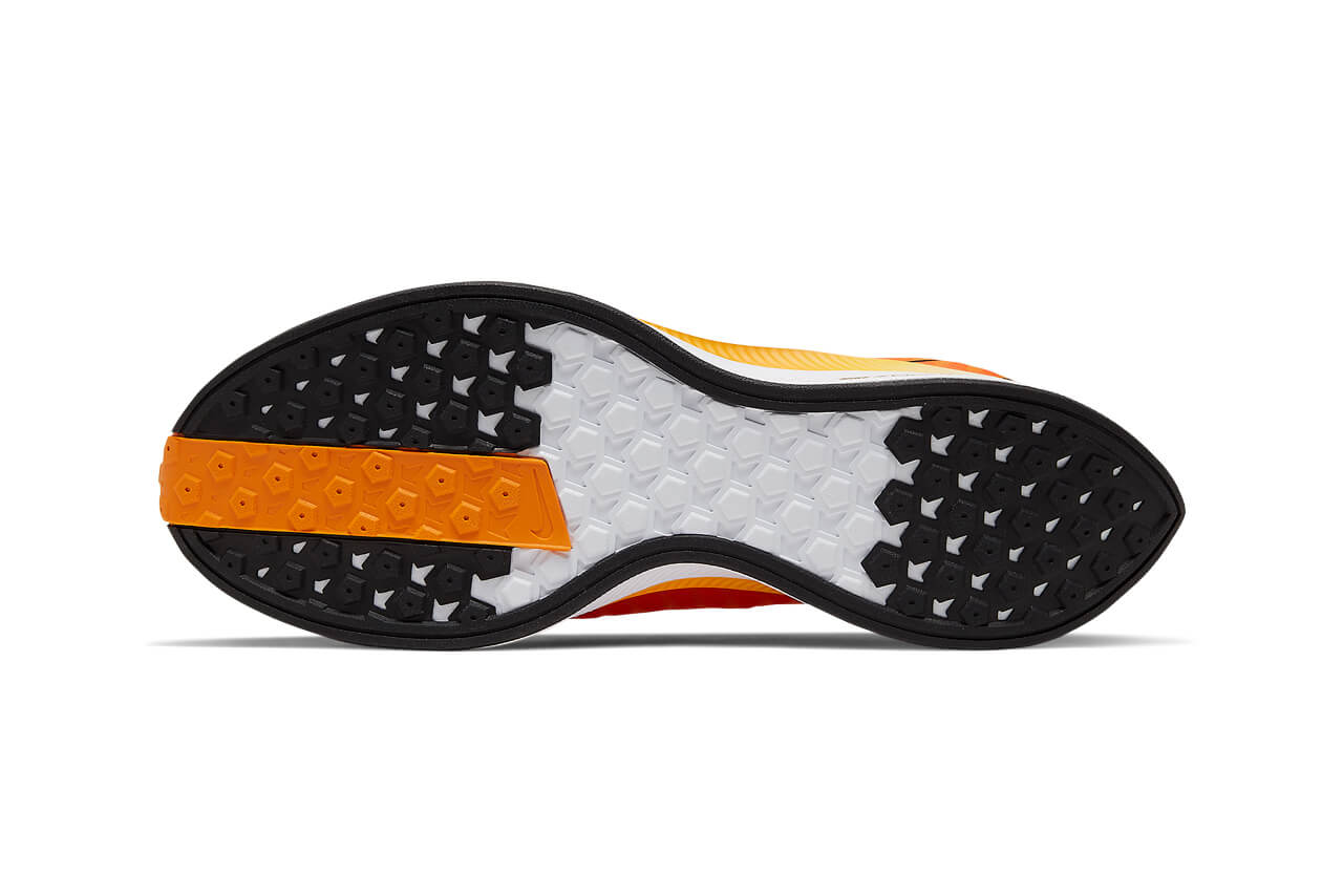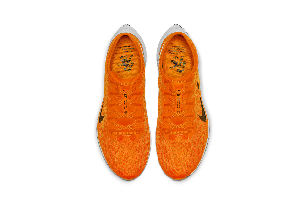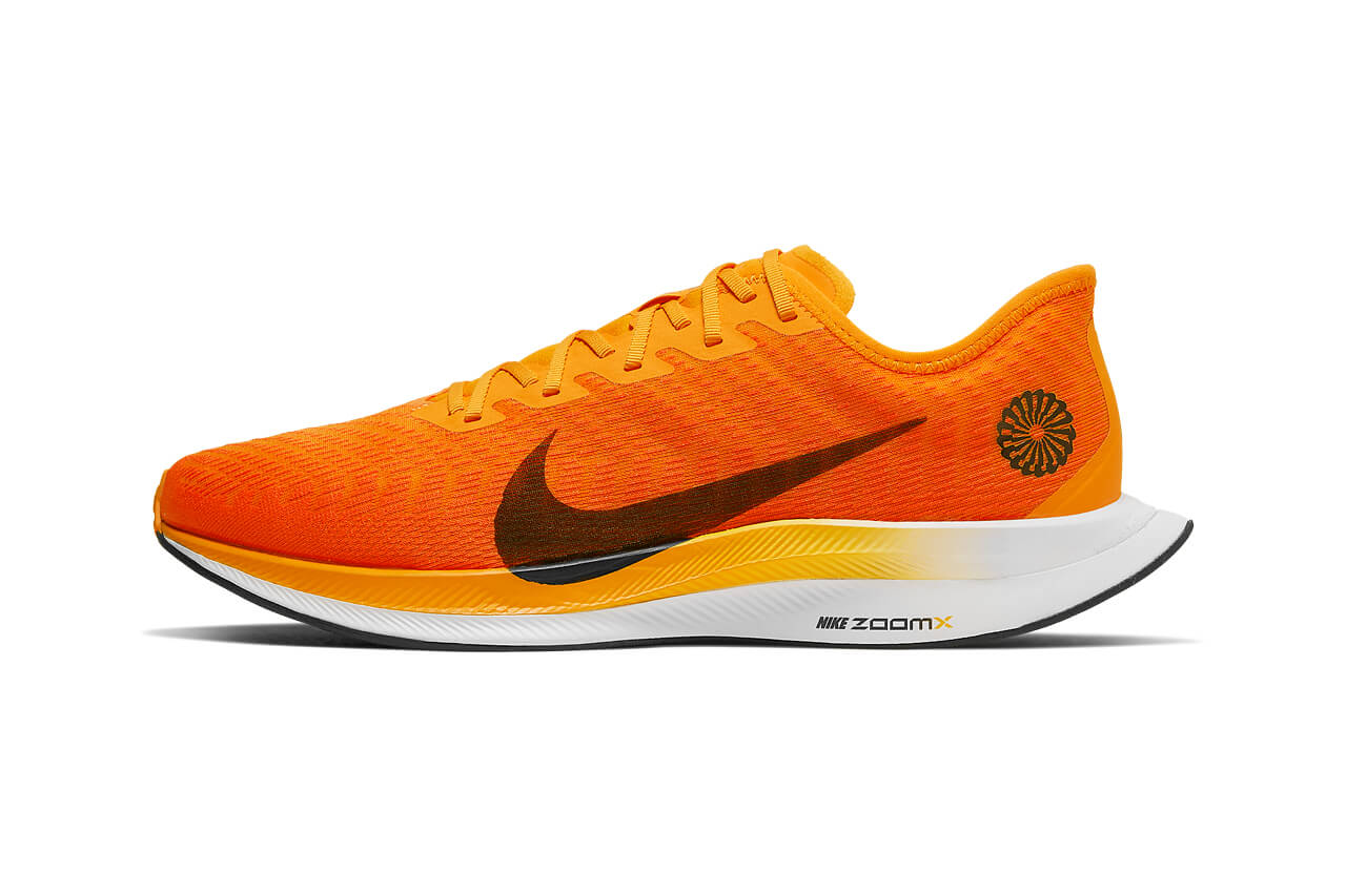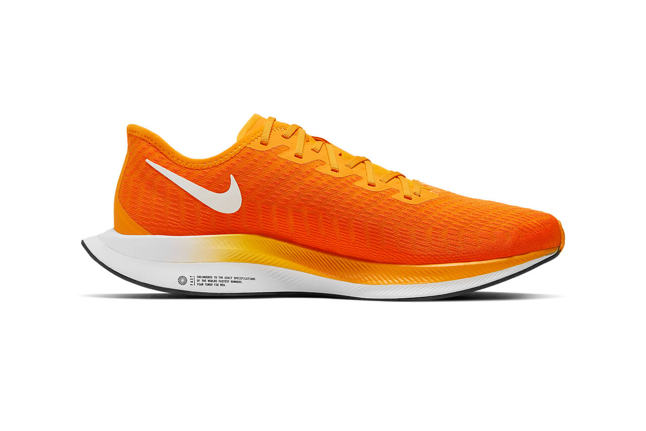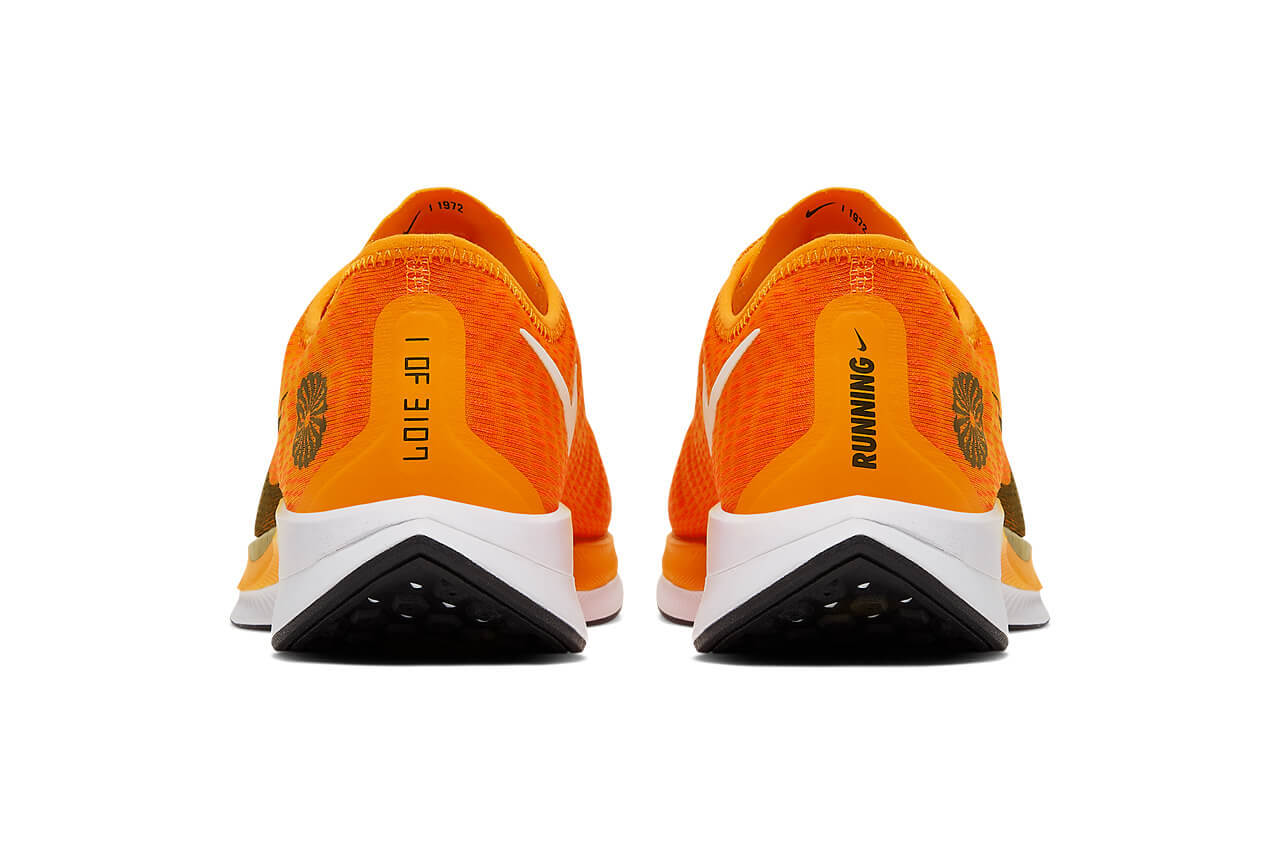 Zoom Pegasus Turbo II ครั้งนี้ไนกี้เลือกใช้สีส้มจัดจ้าน แต่วัสดุด้านบนยังเป็นผ้าตาข่ายสีส้มที่ค่อนข้างหนา และทำลวดลายกราฟิก BRS อยู่ในพื้นรองเท้าด้านใน ส่วนพื้นรองเท้าชั้นกลางเป็นการมิกซ์กันระหว่างสีขาวตัดกับสีส้ม รองรับการกระแทกด้วยโฟม ZoomX มีตรา Swoosh สีดำขนาดใหญ่อยู่ด้านข้าง และ Swoosh สีขาวขนาดเล็กอยู่อีกด้านตรงขอบส้นเท้า