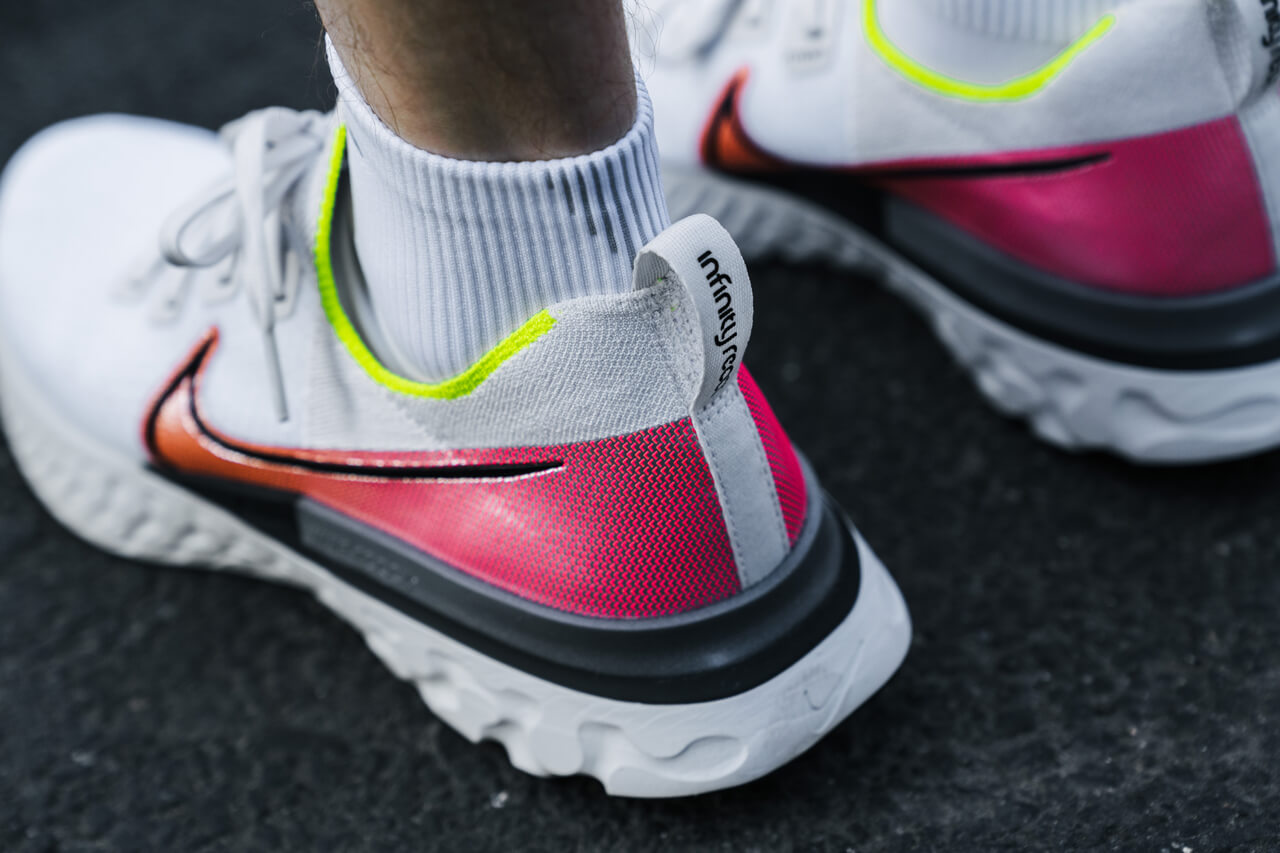 ก่อนหน้านี้รองเท้าวิ่ง Nike ที่ใช้โฟม React ได้รับการออกแบบให้วิ่งได้ไกลถึง 300-350 ไมล์โดยไม่ต้องมีการบีบอัดเป็นพิเศษแต่อย่างใด แต่ React Infinity Run ได้รับการรับรองว่าสามารถวิ่งได้ไกลกว่ารุ่นเดิมๆเกือบสองเท่าและมีอายุการใช้งานยาวนานถึง 500-600 ไมล์เลยทีเดียว ทั้งนี้เพราะมีส่วน midsole ที่ใช้โฟม React 24% ซึ่งมากกว่ารุ่นก่อนหน้า ทำให้รองเท้ากลายเป็นเหมือนเบาะที่หนานุ่มรองรับแรงกระแทกของเท้าได้อย่างดีเยี่ยม