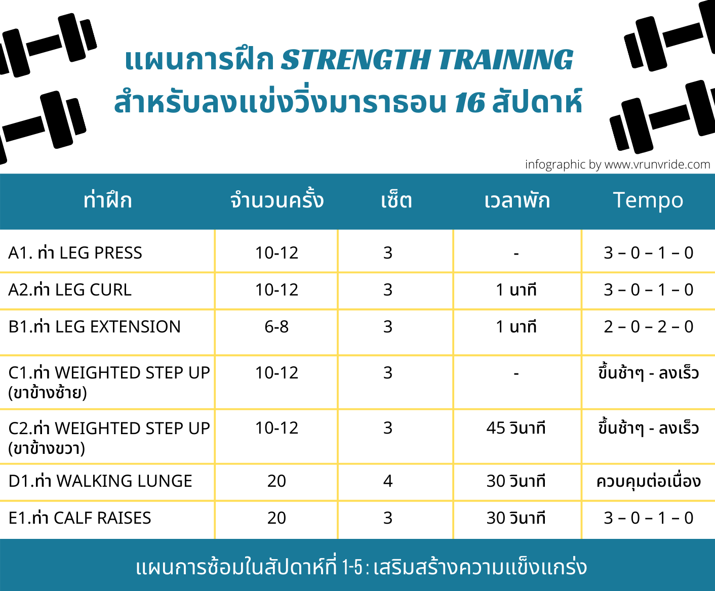แผนการซ้อมในสัปดาห์ที่ 1-5 : เสริมสร้างความแข็งแกร่ง