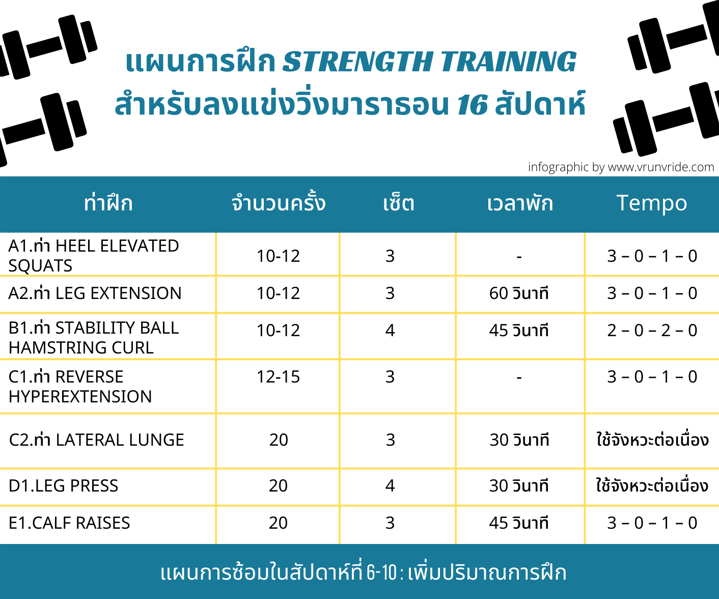 สัปดาห์ที่ 6-10 : เป็นช่วงการเพิ่มปริมาณการฝึก