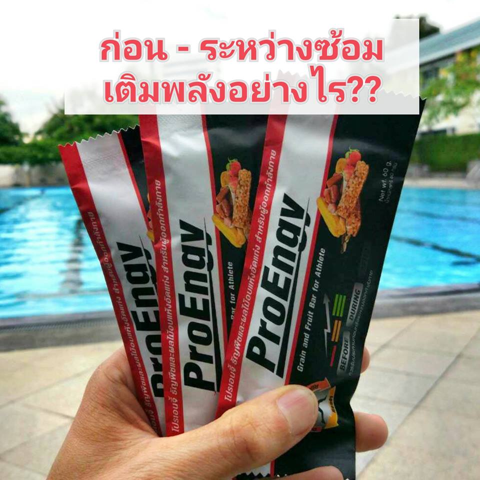 ส่วน Energy bar ที่ขอแนะนำ “ProEngy” โปรเอนจี้ ธัญพืช และผลไม้อบแห้งอัดแท่ง สำหรับผู้ออกกำลังกาย ส่วนผสมหลักๆ ได้แก่ น้ำตาล,น้ำผึ้ง เม็ดมะม่วงหิมพานต์, เมล็ดทานตะวัน, อินทผาลัม, ข้าวพอง และอื่นๆ ซึ่งเป็นให้พลังงานคาร์โบไฮเดรต